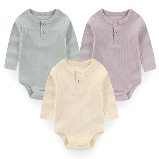3 Pieces Solid Color Unisex Baby Bodysuits Cotton Soft Newborn Boy Girl Onesies 0-24M Long Sleeves Infant Clothes