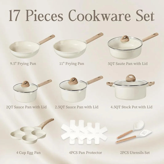 17pcs Pots and Pans Set Non Stick, Kitchen Cookware Sets, Easy to Clean Kitchen Induction Pots and Pans, Pot and Pan Sets