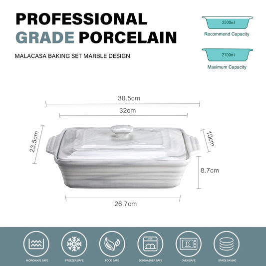 MALACASA Bake Series Porcelain Marble Oven Dishes 32cmx23.5x8.7cm 2700ml Baking Trays Oven Ramekin Gray Oven Dish