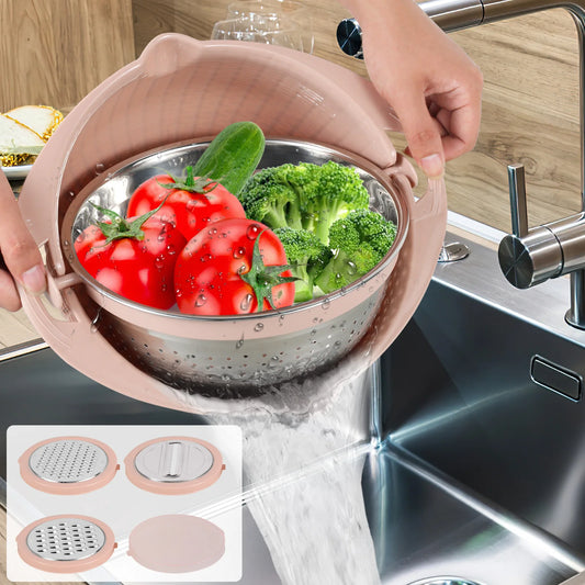 Kitchen Colander Set with Plastic Mixing Bowl 360°Rotating Food Strainers with 3 Thread Graters Stainless Steel Pasta Strainer