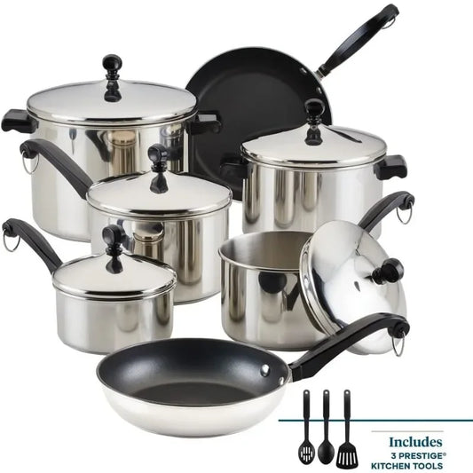 Farberware Classic Stainless Steel Cookware Pots and Pans Set, 15-Piece,50049,Silver