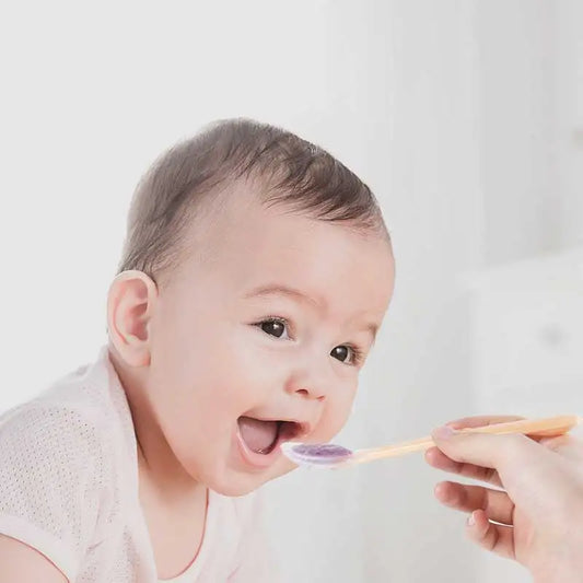 2Pcs Self Feeding Baby Spoon Teething Spoon Self Feeding Weaning Spoons for 6+ Months Babies Pureed Foods Feed Training