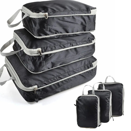 Set/3 pieces Compressible Packing Travel Storage Bag Cubes Waterproof Suitcase Nylon Portable With Handbag Luggage Organizer