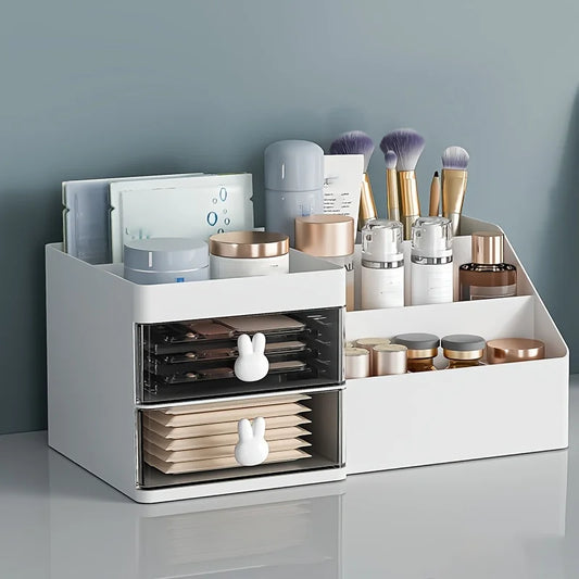 Unisex-Adult Large Capacity Cosmetic Display Case with 2 Drawers, Tension Mount, Plastic Polished Finish
