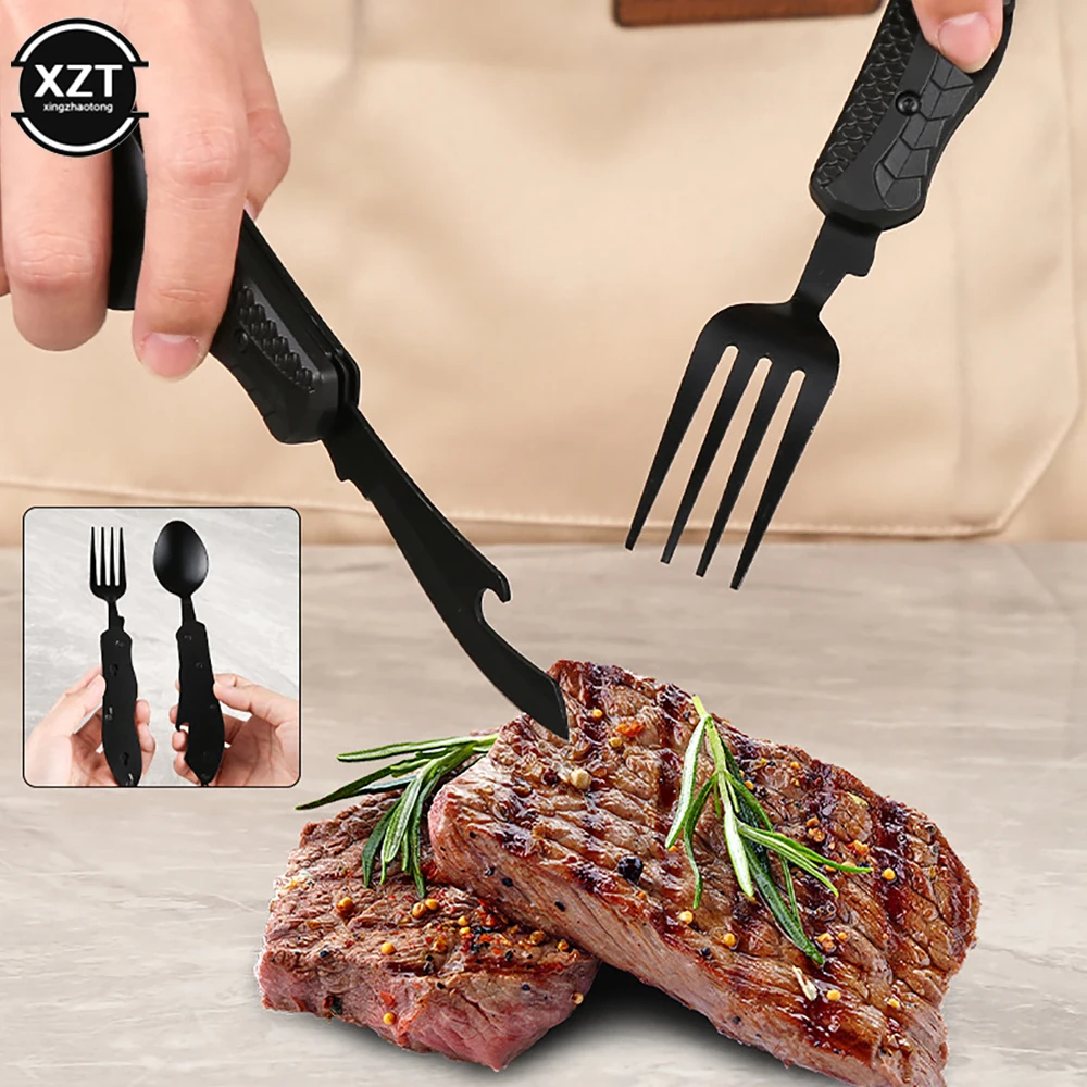 3-in-1 Outdoor Folding Spoon Fork Knife Combo Set Cutlery Picnic Travel Portable Multitool Stainless Steel Camping Utensils