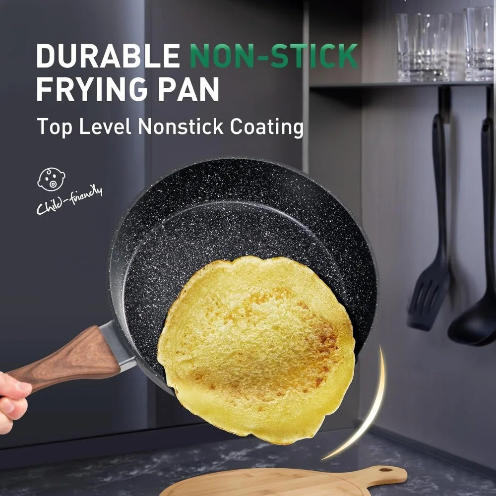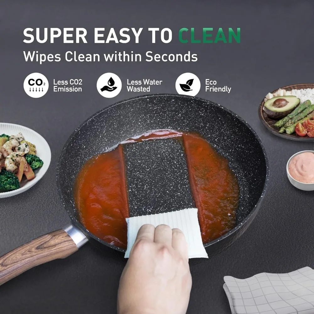 - 【Super Non-Stick Experience】Inside - High-grade natural marble coating, food just slides right out of the pan, making cooking a breeze